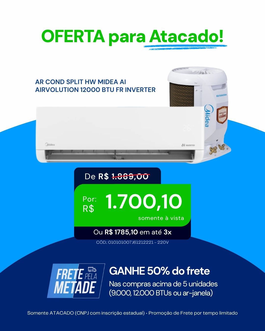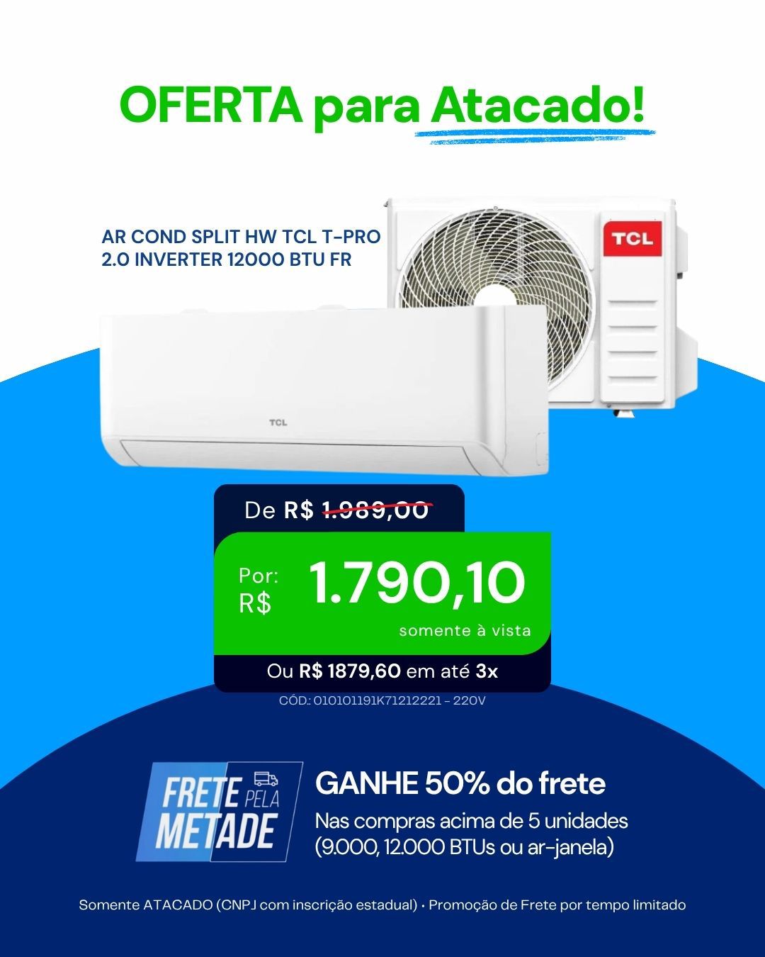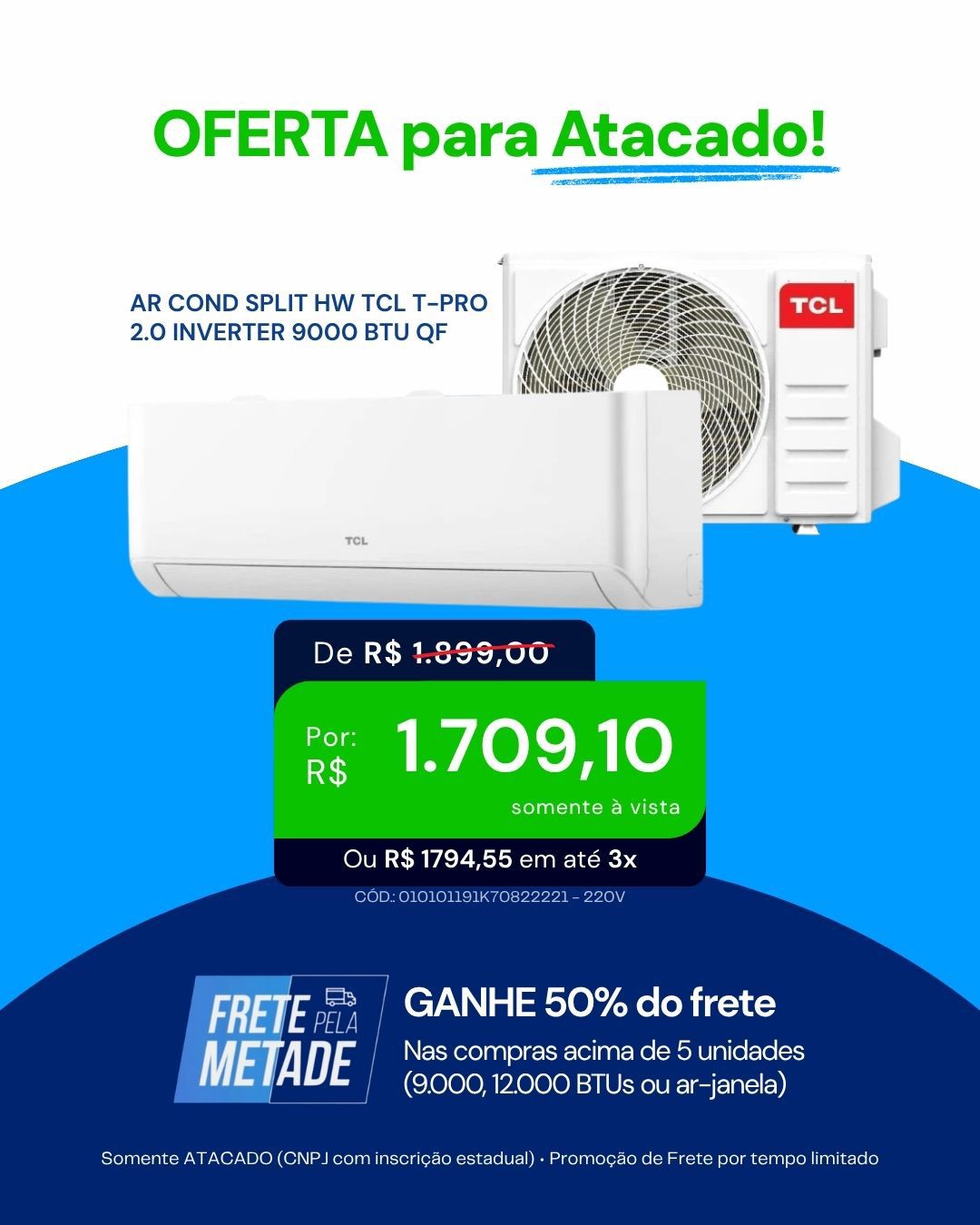 🚚 Comprou acima de 5 unidades (9.000, 12.000 BTUs ou ar-janela)?