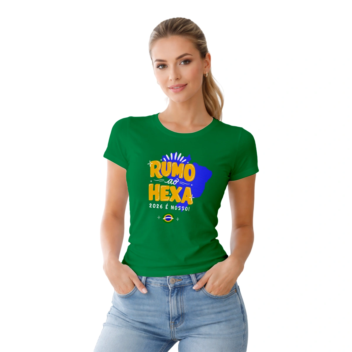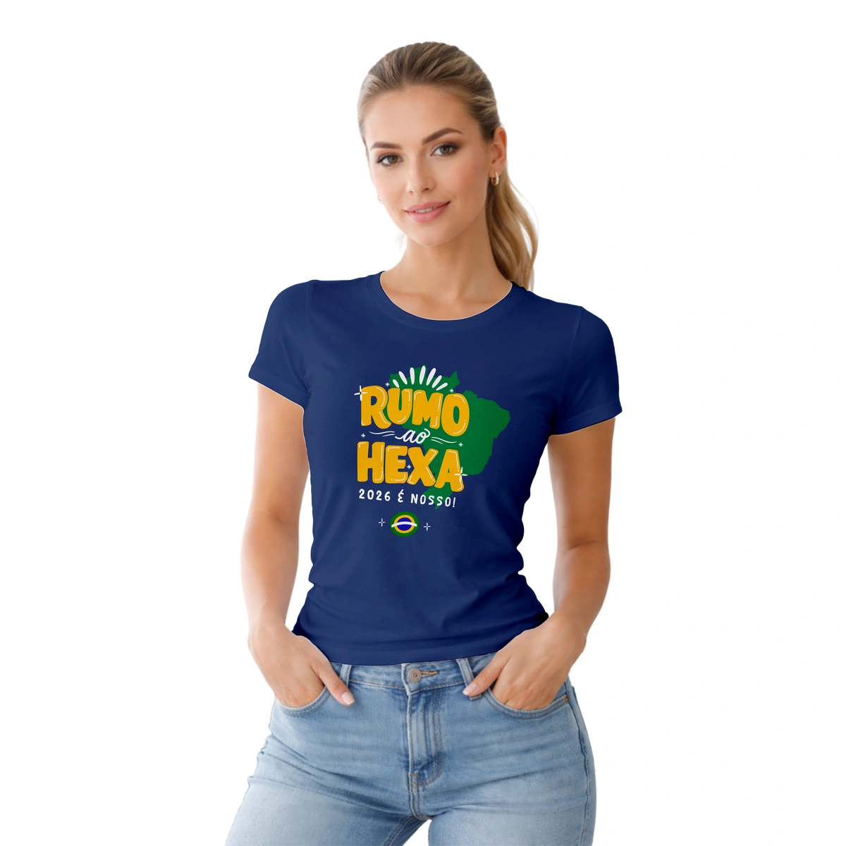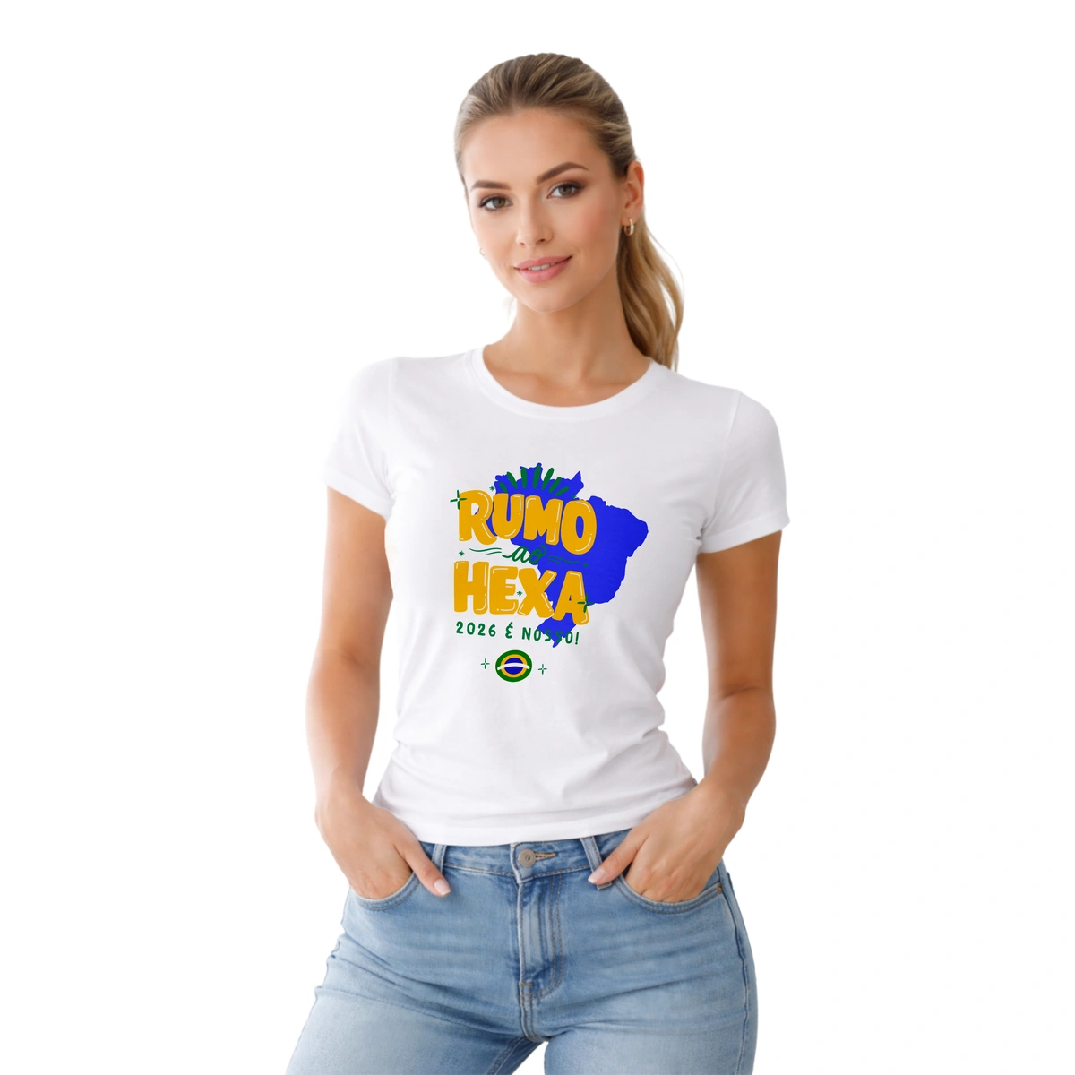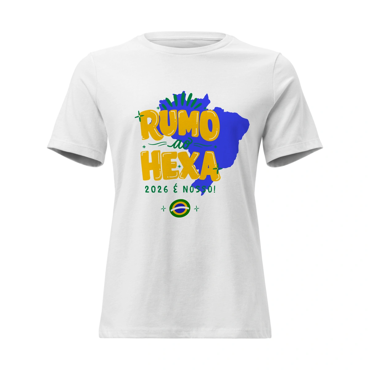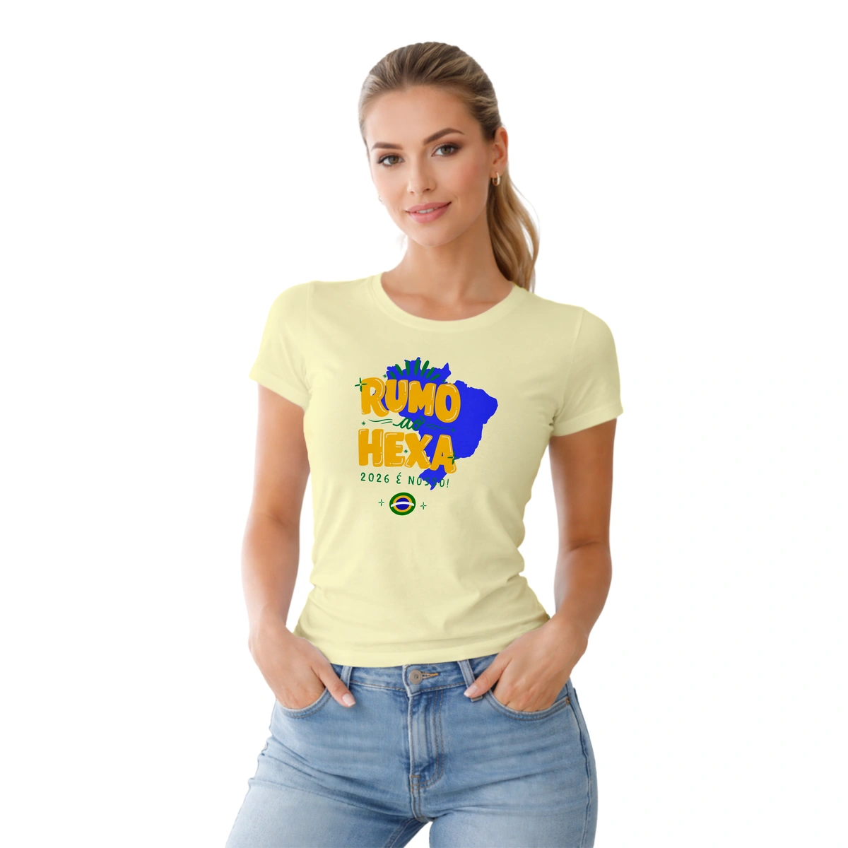 Camiseta Baby Look temática da Copa do Mundo, perfeita para quem quer entrar no clima do futebol com estilo, feminilidade e conforto. Com modelagem mais ajustada ao corpo, valoriza o caimento sem abrir mão da leveza, sendo ideal para torcer, sair ou usar no dia a dia representando sua paixão pelo esporte.