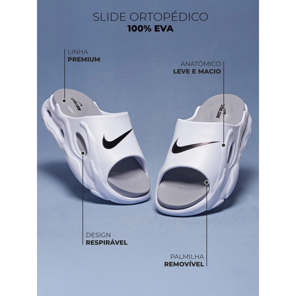 Solado: EVA leve e antiderrapante