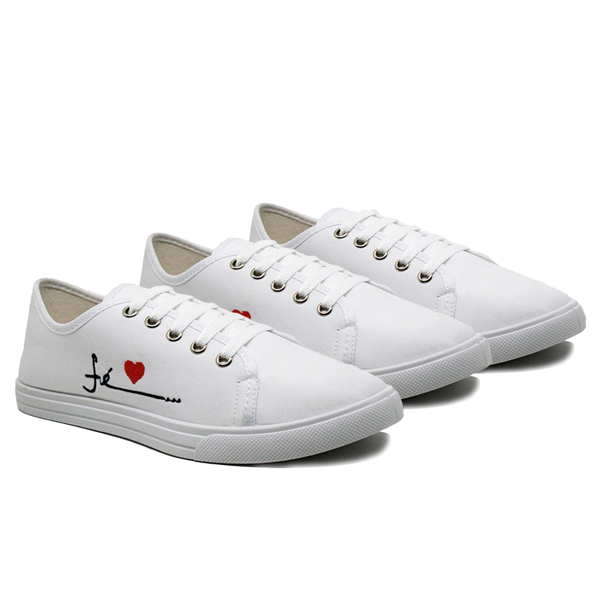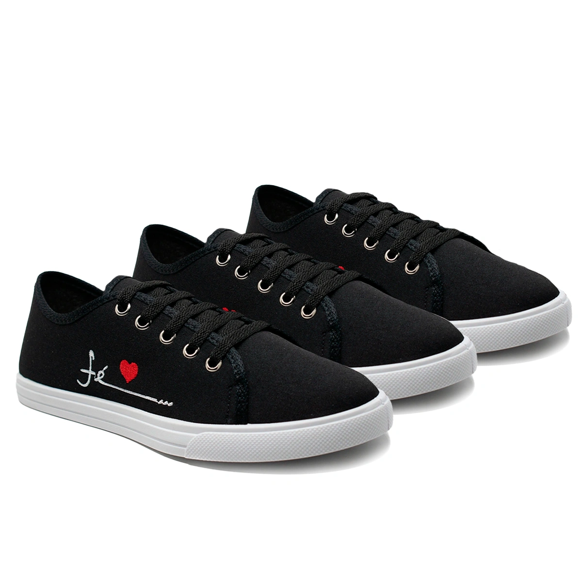 Kit vai com 3 lindos pares de Tênis Feminino Casual Fé é muito mais do que estilo, é uma mensagem que você carrega nos pés! Com bordado delicado da palavra “Fé” e um coração vermelho, ele une moda, conforto e significado. Feito em material têxtil leve e macio, proporciona uma pisada suave e ideal para o dia a dia. O design casual combina perfeitamente com diversos looks, transmitindo atitude e boas energias por onde você passar.
