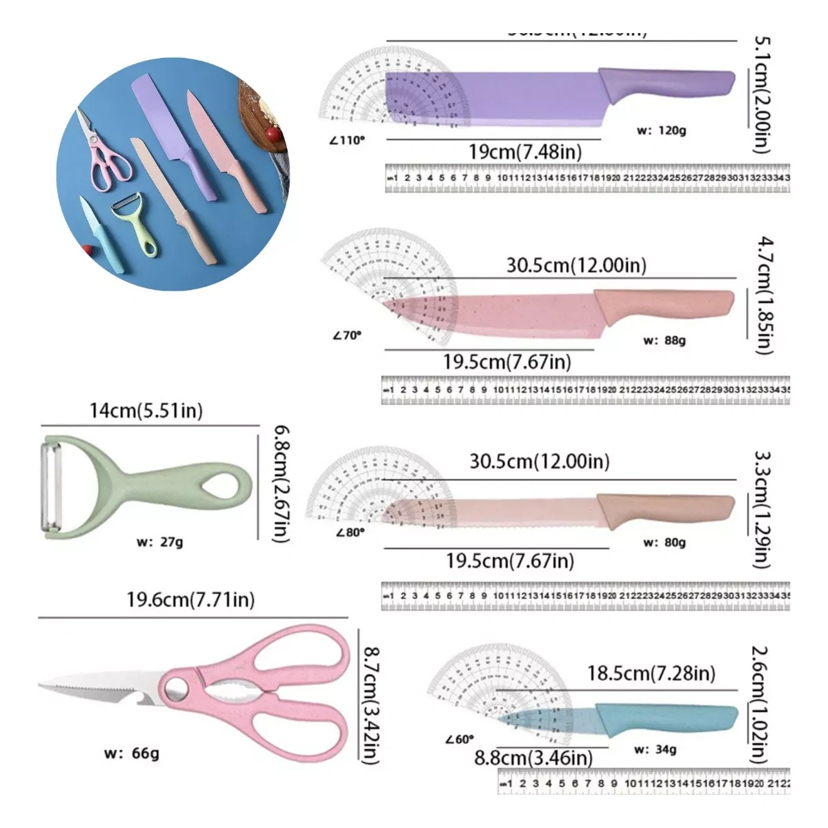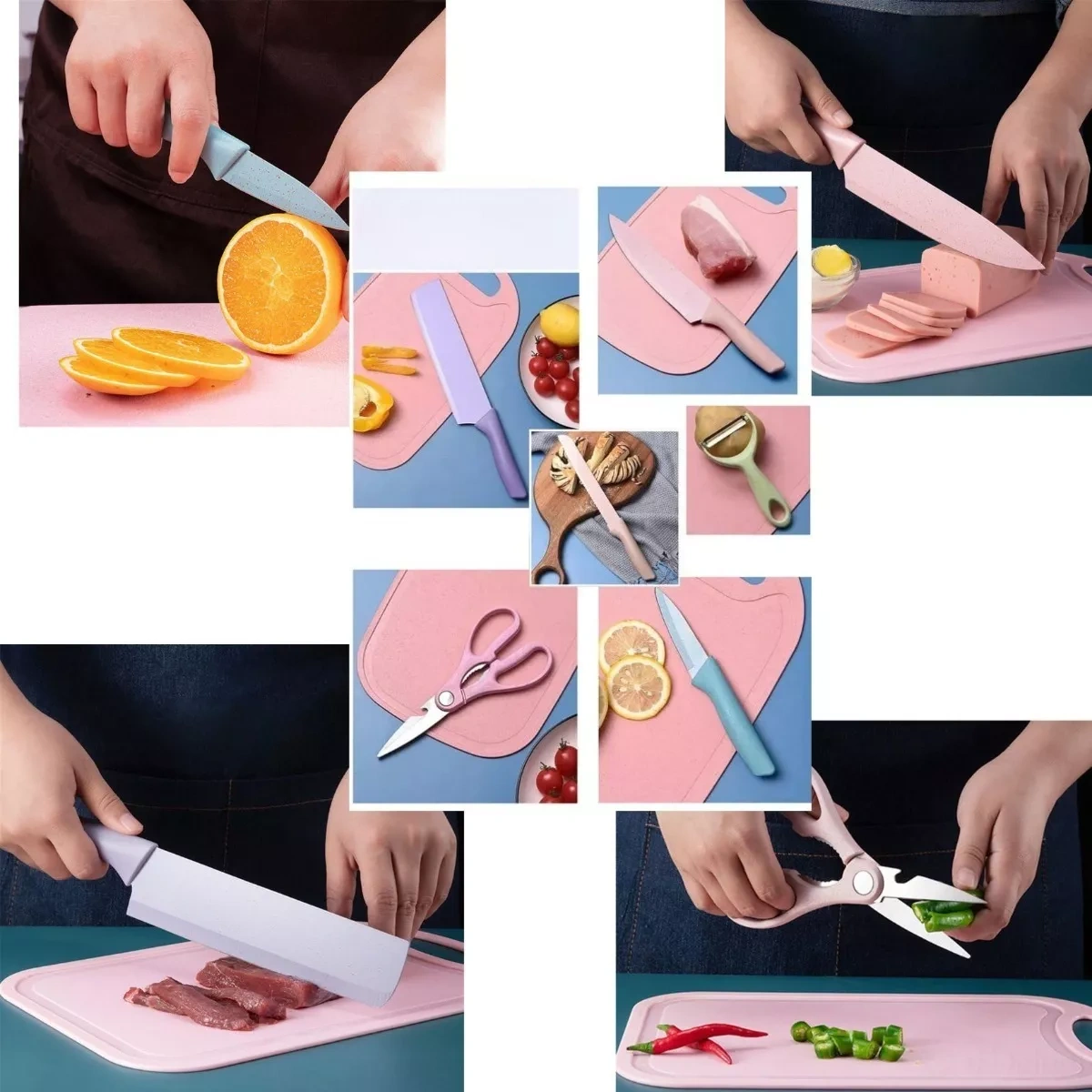 Conjunto De Facas De Cozinha Em Aço Inoxidável Colorido Multifuncional 6 peças.